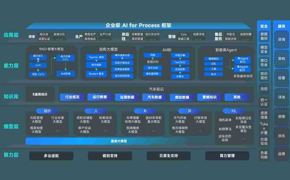 端到端的一站式AI工作空间深度融合了从企业战略规划到日常经营的全流程业务板块,,定向解决车企内部领域多、、、部门多、、链条长、、、、场景碎片化等难题,,,支持车企快速构建以AI为核心的生产力写作体系,,实现任务执行与AI能力的无缝集成与交互
